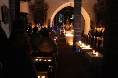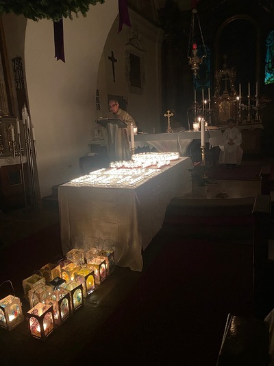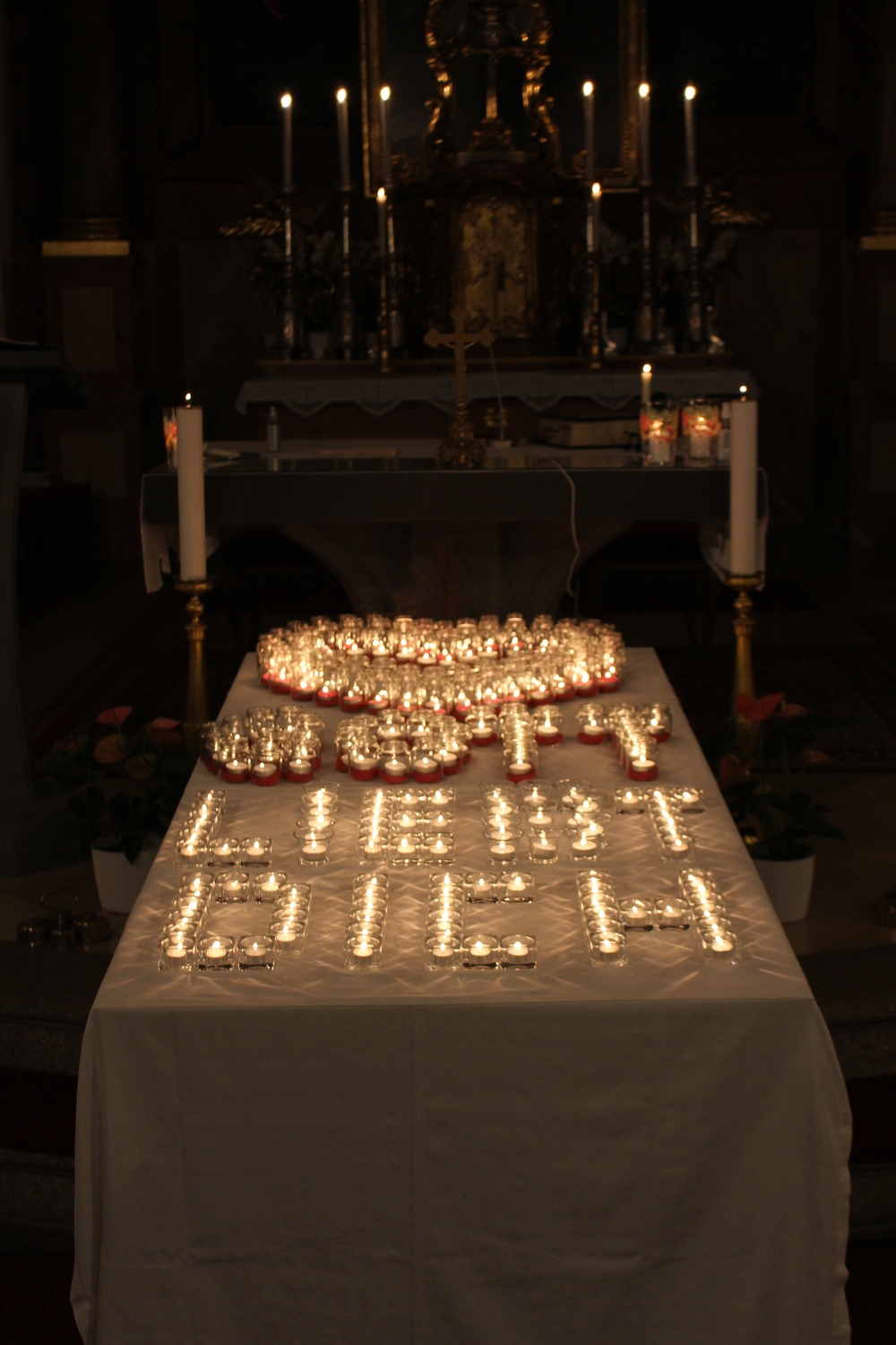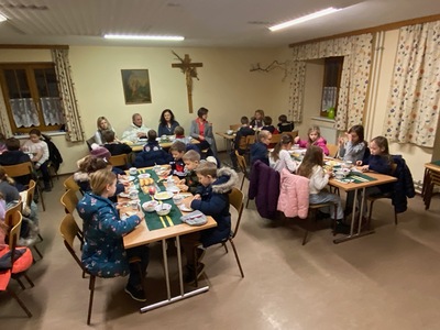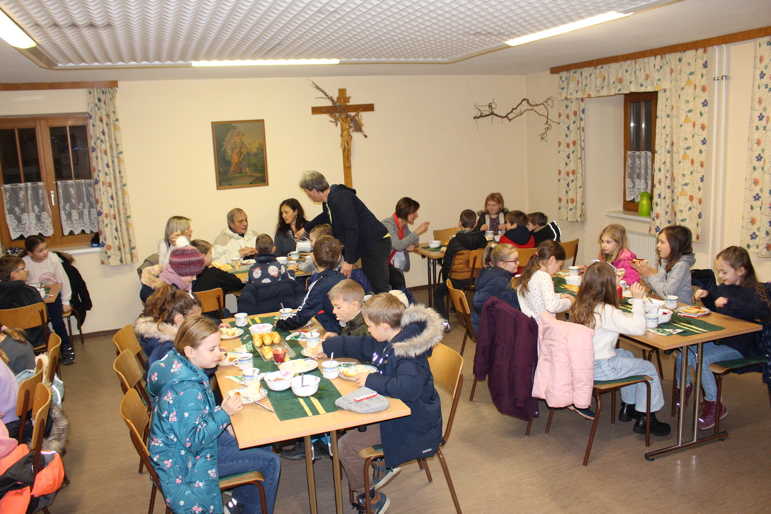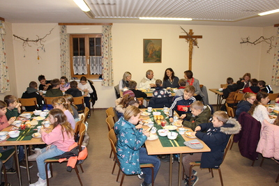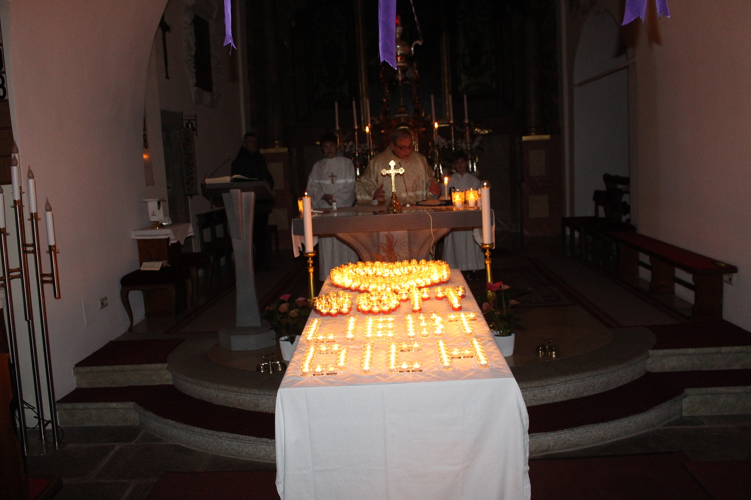 Viele Kinder der Volksschule besuchten mit ihren Lehrkräften gemeinsam die Roratemesse am 11. Dezember, um schon an diesem Tag unseren Pfarrer Pater Richard zum 70. Geburtstag zu gratulieren.
