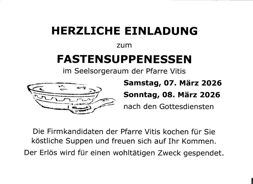 Die Firmkandidaten der Pfarre Vitis laden zum Fastensuppenessen ein.